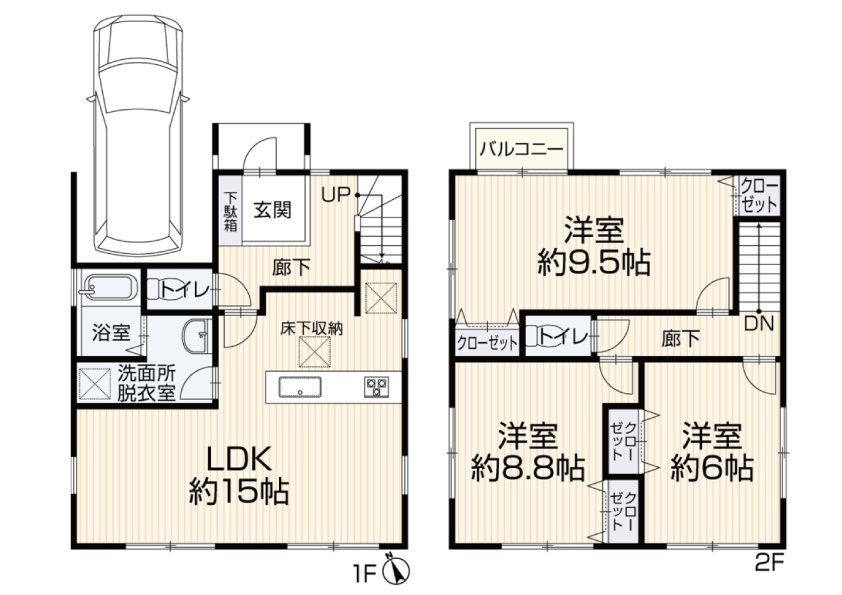 部屋の特長 | 全居室収納、LDK15畳以上、2階建、全居室6畳以上 |