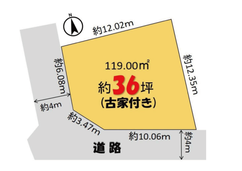 備考 | 古家(昭和62年築 木造 延床92.74㎡) 第1種高度地区、絶対高さ10m、外積後退1m、22条区域 |