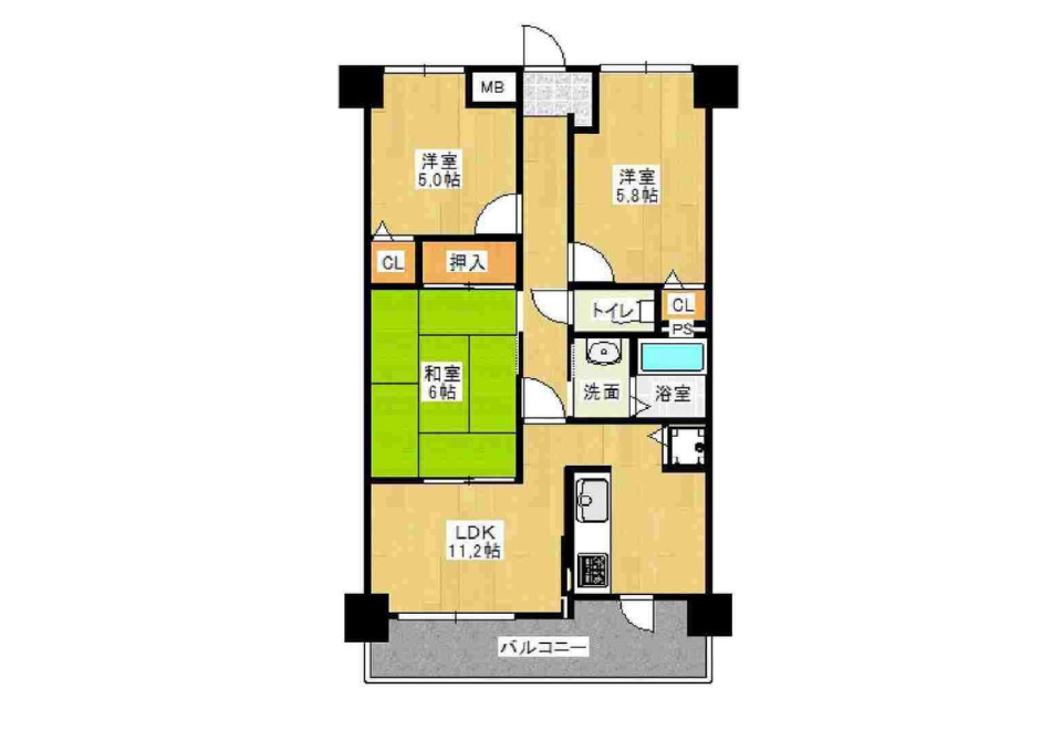 3LDK / 61.92㎡(壁心)